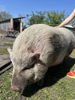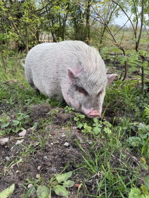 Unser Ziel ist ein natürlich gestaltetes, großzügiges Schweinegehege mit Schattenbereichen, Suhle und vor allem sicheren Einzäunungen. Der Platz ist dafür vorhanden und auch bereits von den beiden als Zu Hause angenommen und für gut befunden worden.